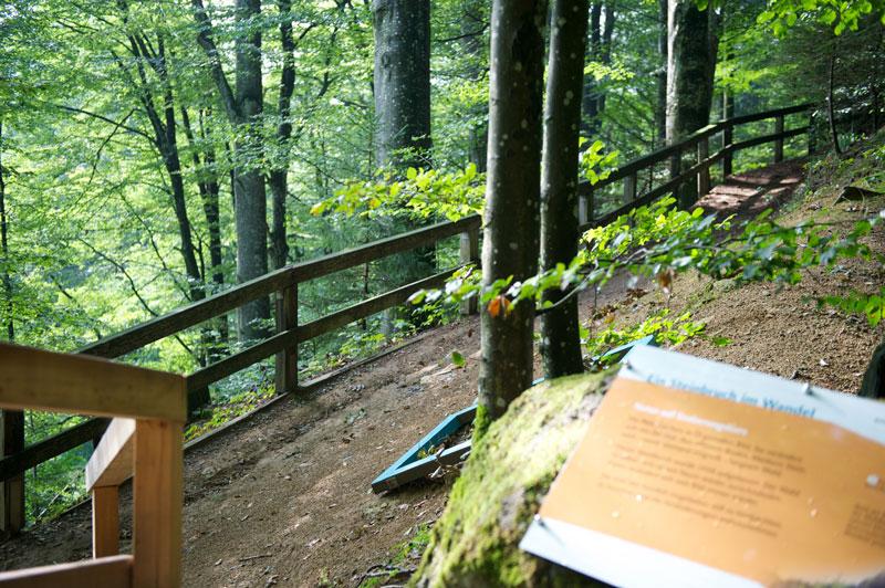 Entdecken Sie drei Naturschätze auf engstem Raum – den Staffelbach, den Eckmühlbach und das Eckmühlhölzl. SEHEN – HÖREN – SELBST AKTIV WERDEN ist das Motto des 1,6 km langen Rundweges. 12 Stationen laden dazu ein, die Natur vor Ort näher zu erforschen und mehr darüber zu erfahren. Sie regen dazu an, an besonderen Orten stehen zu bleiben, zu staunen und zu genießen oder die Sinne zu testen und bewusst einzusetzen. Groß und klein können zum Beispiel nach Tiersilhouetten Ausschau halten oder Wasser schöpfen und testen, welche Wirkung der Waldboden hat. An einer anderen Station können Baumrinden direkt nebeneinander ertastet und befühlt werden. Eine Liege mitten im Wald bietet außerdem die Möglichkeit den Blickwinkel zu verändern und das Kronendach des Buchenwaldes aus einer ungewohnten Perspektive zu betrachten. Andere Stationen bieten Einblicke in ökologische Zusammenhänge in der Natur und regen zum nachdenken an. Aber auch hier laden Aktionsvorschläge immer wieder dazu ein, selbst aktiv werden.